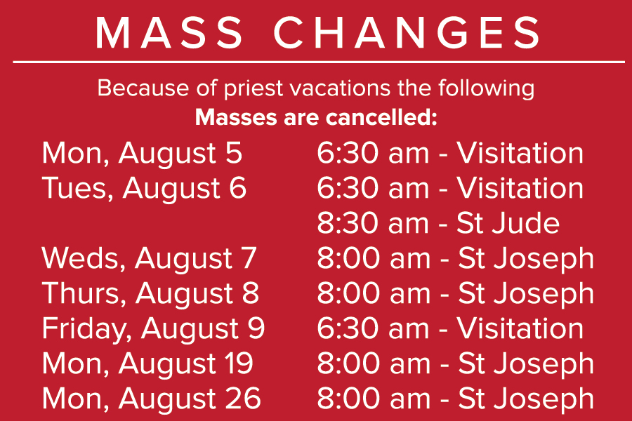 Due to priest vacations, some weekday Masses have been canceled.